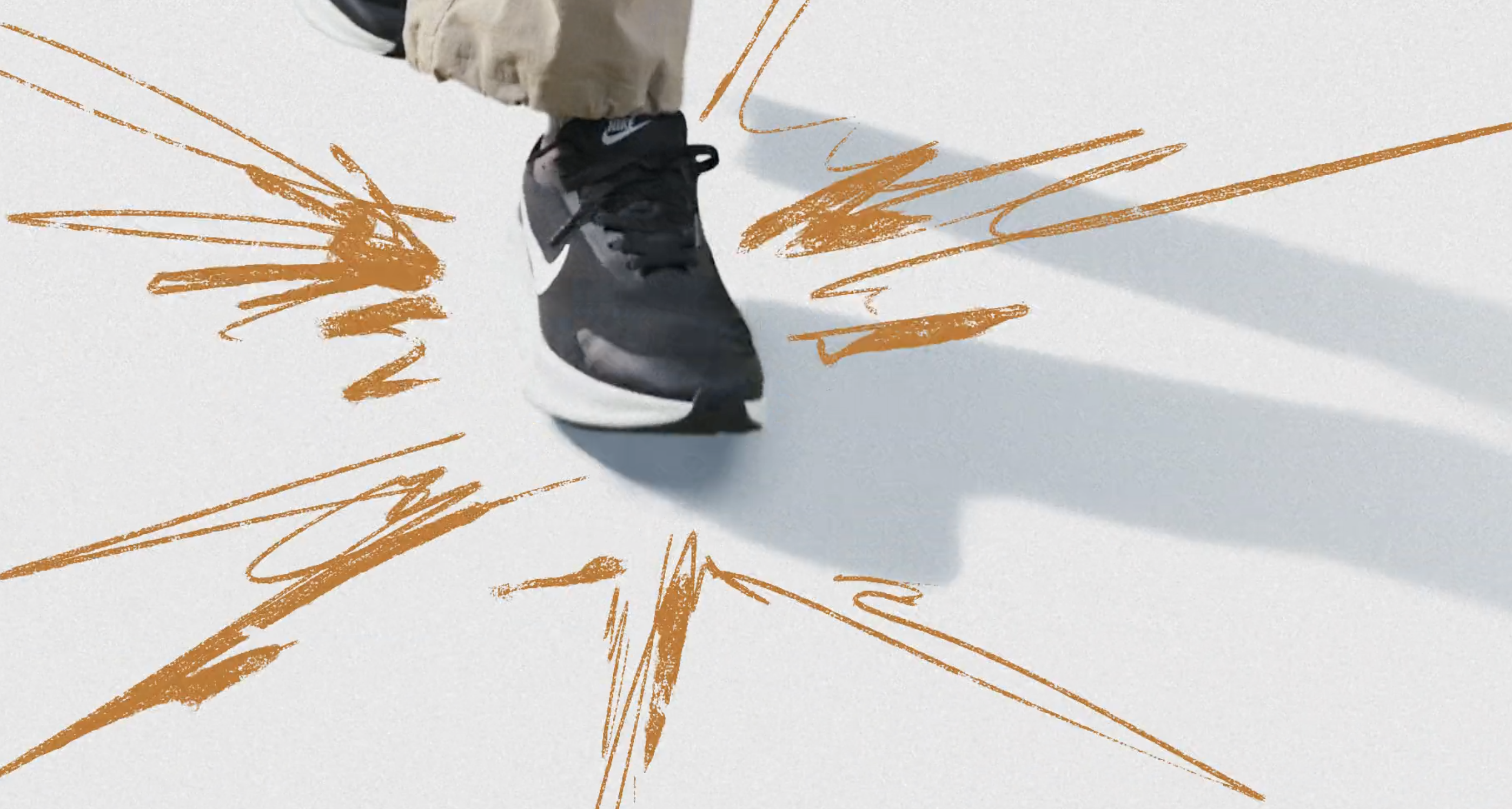 ドローイングとタイポグラフィでナイキらしい躍動感を演出しています。